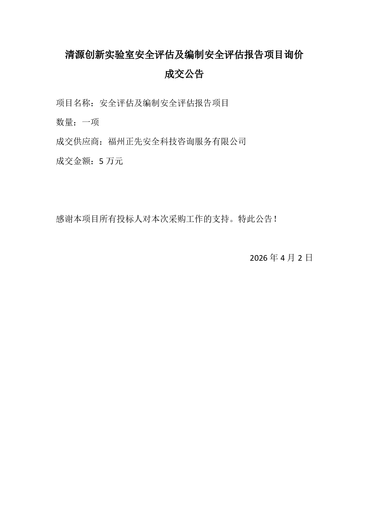 新得利(中国)安全评估及编制安全评估报告项目询价成交公告